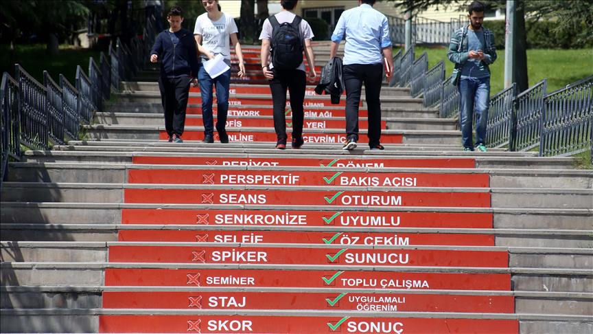 İnsanları günlük hayatta sıkça kullanılan yabancı sözcüklerin Türkçe karşılıklarının kullanılmasına teşvik etmek için geliştirilen projede, üniversitenin doğu ve batı yerleşkelerinde öğrencilerin yoğun olarak kullandığı merdiven basamaklarına yabancı sözcükler ve Türkçe karşılıklarını gösteren yazılar yerleştirildi.