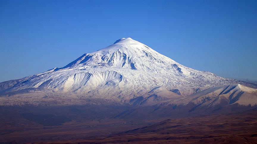 "Türkiye'nin çatısı" Ağrı Dağı, kar yağışı sebebiyle beyaza büründü.