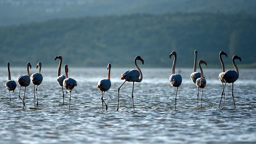 Türkiye'de, göçmen kuşlar için önemli sulak alanlardan Milas'taki Tuzla Sulak Alanı'na gelen flamingo ve farklı kuş türleri görsel şölen sunuyor.