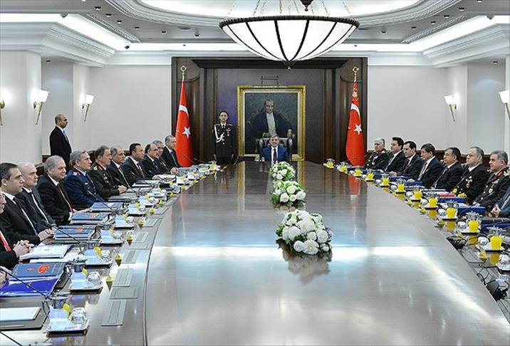 Halkın huzurunu ve ülkenin güvenliğini ilgilendiren hususların ayrıntılı olarak görüşüldüğü ifade edilen bildiride, "Ulusal güvenliğimizi tehdit eden yapılanmalar ve bunlara yönelik olarak alınan tedbirler değerlendirilmiştir" ifadesine yer verildi.