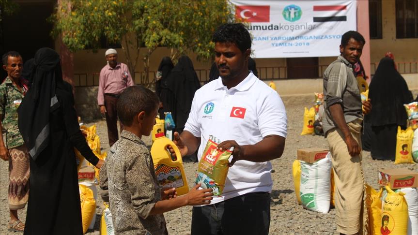 Sadakataşı Derneği'nden yapılan açıklamaya göre, Umuda Koşanlar Derneği'nin Yemen'deki acil yardım çalışmaları kapsamında Aden, Marib ve El Hudeyde bölgelerindeki yaklaşık 3 bin 500 ihtiyaç sahibine un, şeker, pirinç, süt tozu, konserve ve ekmekten oluşan gıda kumanyası ile hijyen paketi dağıtımı yapıldı.