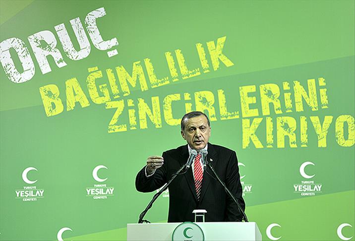 Erdoğan, konuşmasını, "Mısır'daki olanları biliyorsunuz. Bu ay, dua ayıdır. Her zaman dua ama ramazan başka. Suriye'de olanları biliyorsunuz. Temennim odur ki ramazan ayı, inşallah bayramla bir barışa ulaşacağımız ay olsun diyorum. Hepinizi Allah'a emanet ediyorum. Allah yar ve yardımcınız olsun diyorum" diyerek tamamladı.