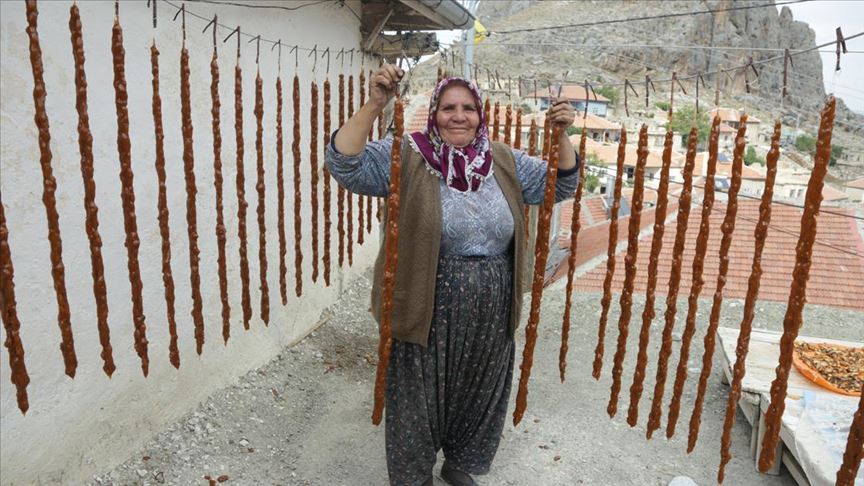 Bağ bozumu zamanının sonlarına gelindiği bugünlerde, hemen hemen her evin önünde kaynayan bir pekmez kazanı, iplere nakış gibi geçirilmiş cevizler, bahçe, balkon, çatı gibi güneş gören yerlerde örtülerin üzerinde kurutulan bandırma ve köfter gibi yöresel yiyecekler dikkat çekiyor.