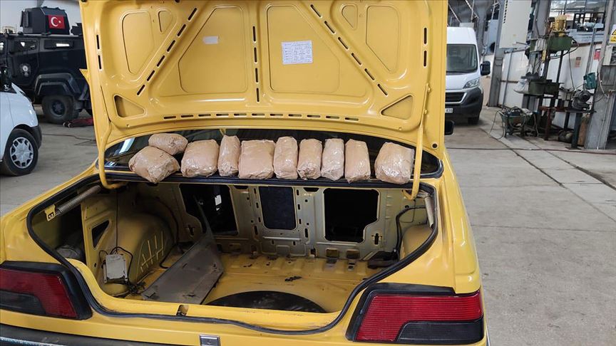 Narkotik köpeği "Şila"nın da kullanıldığı aramada, otomobilin bagajına gizlenmiş 10 paket halinde 4 kilo 155 gram sentetik uyuşturucu bulundu.
