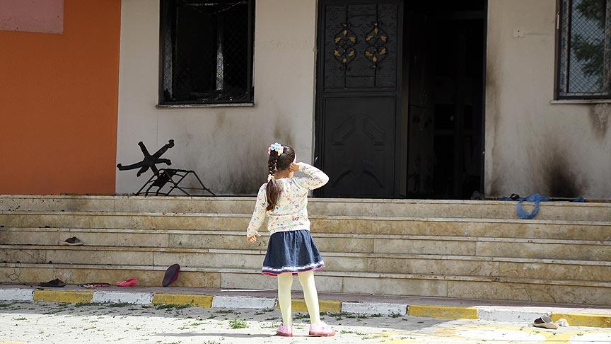Okulun bayrak direğini söken teröristler, kapısını kırdıkları giriş bölümüne bıraktıkları piknik tüpüyle güçlendirilmiş el yapımı patlayıcıyı infilak ettirerek, ardından bina içine molotofkokteyli attı.