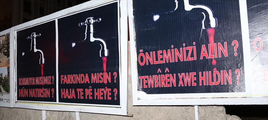 Öte yandan Van'daki billboardlarda yer alan "kan akan musluk" görselli ilanın, "Su Kültürünü Geliştirme Projesi" kapsamında hazırlandığı bildirildi.