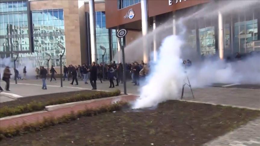 Van Büyükşehir Belediye Başkanı Bekir Kaya'nın gözaltına alınması bahanesiyle izinsiz gösteri yapan gruba polis müdahalede bulundu.