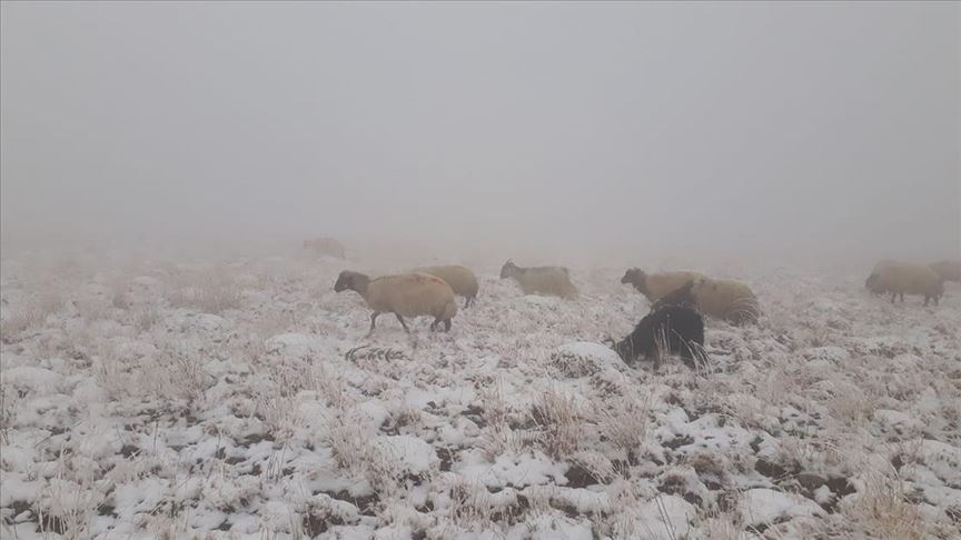 Küçükbaş hayvanlarını otlatmaya götüren besiciler de kar nedeniyle zor anlar yaşadı.