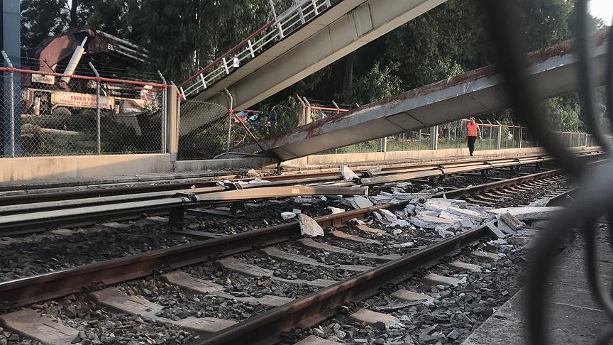 Çöken yaya üst geçidinin bir bölümü ise bölgeden geçen metro hattı ve yola devrildi.