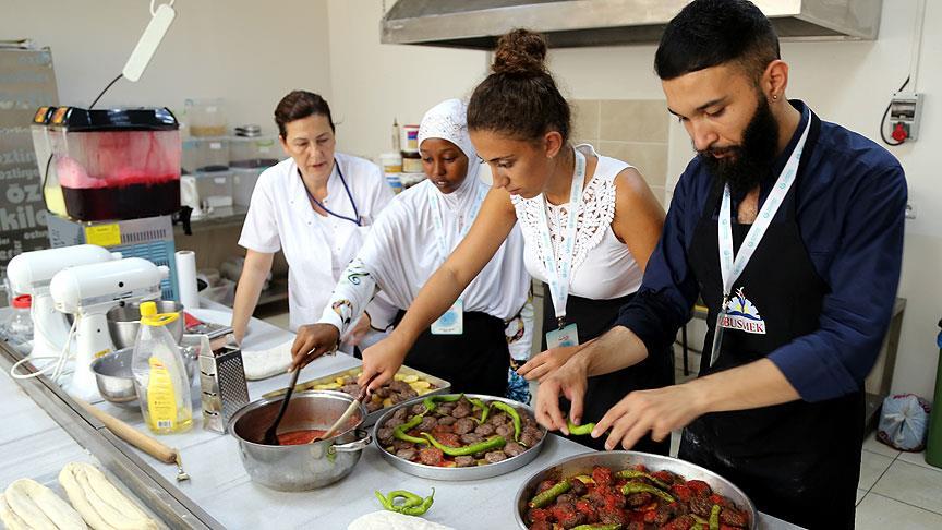 Yunus Emre Enstitüsünün "Türkçe Yaz Okulu" kapsamında 12 ülkeden Bursa'ya gelen 28 öğrenci, Türk mutfağını tanımak için yaprak sarıp hamur açtı.