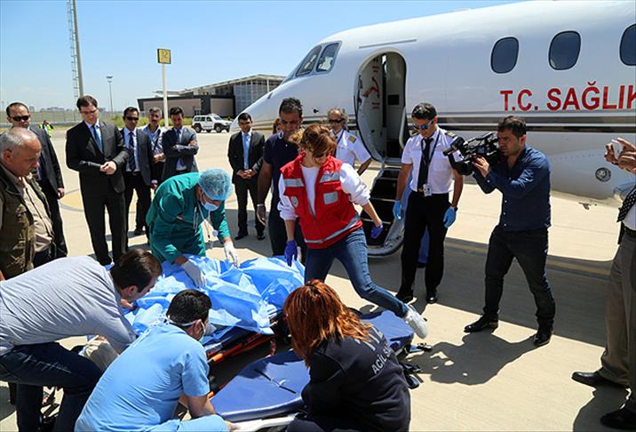 Erbil'de meydana gelen bombalı saldırı nedeniyle vücutlarının çeşitli yerlerinde yanıklar oluşan Türk vatandaşı S.A (26) ile Ö.A. (35), Sağlık Bakanlığına ait ambulans uçakla, Esenboğa Havalimanı'na getirildi.