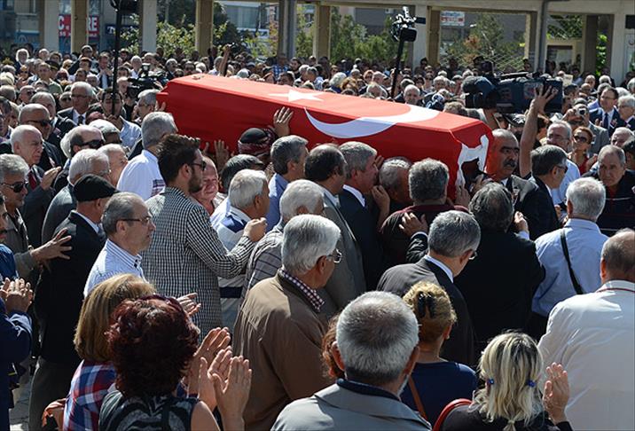 Yazar Turgut Özakman'ın cenazesi, Kocatepe Camisi'nde kılınan cenaze namazının ardından Karşıyaka Mezarlığı'nda toprağa verildi.