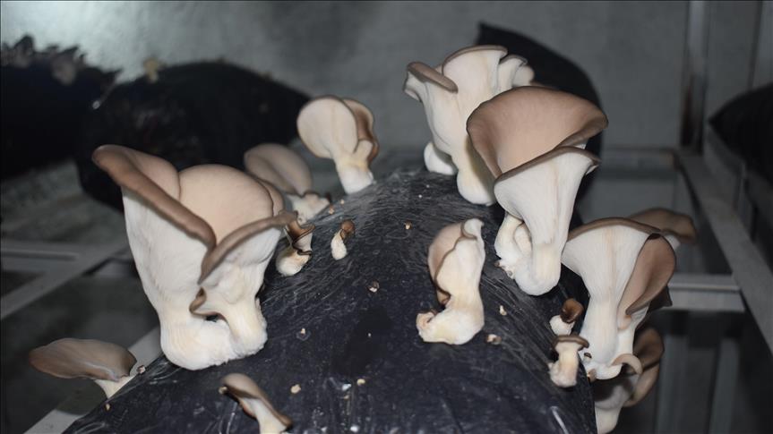 Mardin'in Ömerli ilçesinde 26 yaşındaki Muhammed Çiftçi, devlet desteğiyle evinin bodrum katına kurduğu tesiste istiridye mantarı yetiştiriyor.