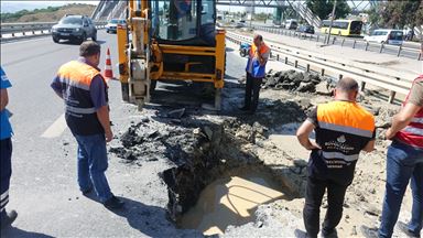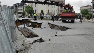 Yol çökünce yolcu minibüsü çukura düştü
