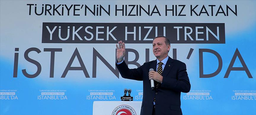Erdoğan, Ankara-İstanbul hattında hizmet vermeye başlayan Yüksek Hızlı Tren (YHT) ile yaptığı yolculukla geldiği Pendik'te düzenlenen törende yaptığı konuşmada, açılışı yapılan Ankara-İstanbul YHT hattının Eskişehir-İstanbul bölümünün ülke ve millete hayırlı olması temennisinde bulundu.