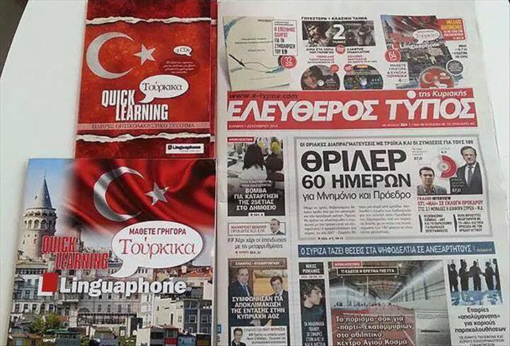 Atina’da yayınlanan yüksek tirajlı Elefteros Tipos gazetesi, hafta sonu sayısıyla birlikte okuyucularına promosyon olarak sesli ve görüntülü Türkçe öğretim seti verdi.