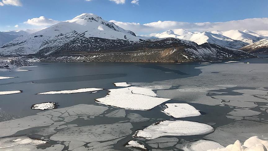 Adıyaman'ın Çelikhan ilçesinde Doğal güzelliğiyle her mevsim özellikle yerli turistlerin ilgi gösterdiği Çat Barajı kıyılarındaki yüzen adalar, ilçede hava sıcaklığının sıfırın altına düşmesiyle buz tuttu.