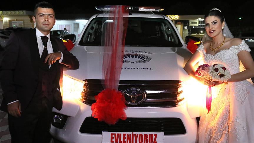 Görev aracını "Gelin arabası" olarak kullanmak isteyen Özer, Mersin Büyükşehir Belediye Başkanı Burhanettin Kocamaz'ın izniyle hayaline kavuştu.