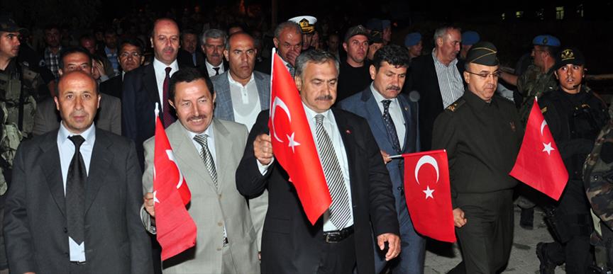 Konuşmanın ardından, Bakan Eroğlu, Vali İrfan Balkanlıoğlu, AK Parti Afyonkarahisar Milletvekili Halil Ürün, Afyonkarahisar Garnizon Komutanı Tuğgeneral Veli Yıldırım, Afyon Kocatepe Üniversitesi Rektörü Prof. Dr. Mustafa Solak, kara, hava, deniz ve jandarma kuvvet komutanlıklarının temsilcileri, diğer protokol üyeleri ile farklı illerden gelen üniversite öğrencileri ve sivil toplum kuruluşu üyeleri, ellerinde Türk Bayrakları ile yürüyüşe geçti.