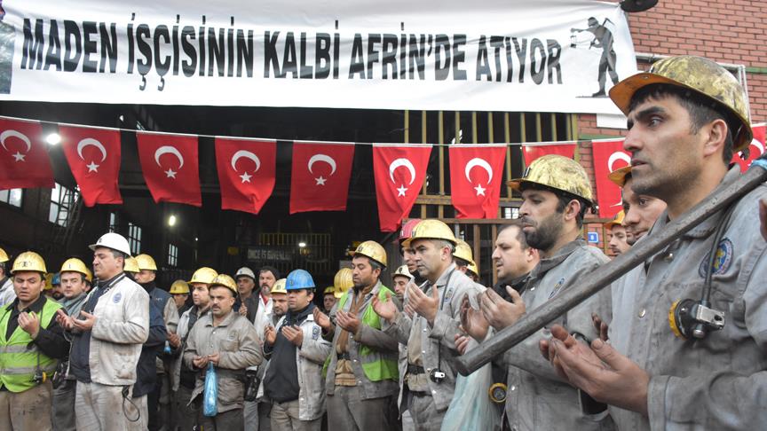 Türkiye Taşkömürü Kurumu (TTK) Kozlu ve Karadon müessese müdürlüklerine bağlı maden ocağında çalışan işçiler, Türk Silahlı Kuvvetleri (TSK) tarafından Suriye'nin Afrin bölgesinde yürütülen Zeytin Dalı Harekatı'na destek amacıyla dua edip, kurban kestirdi.