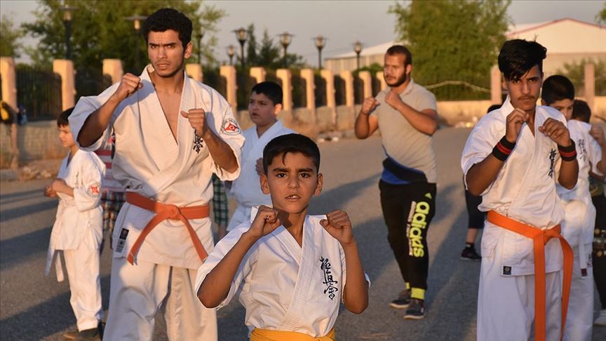 Irak’ın Kerkük kentinde bir grup genç, karate yaparak yeni tip koronavirüse (Kovid-19) meydan okuyor.