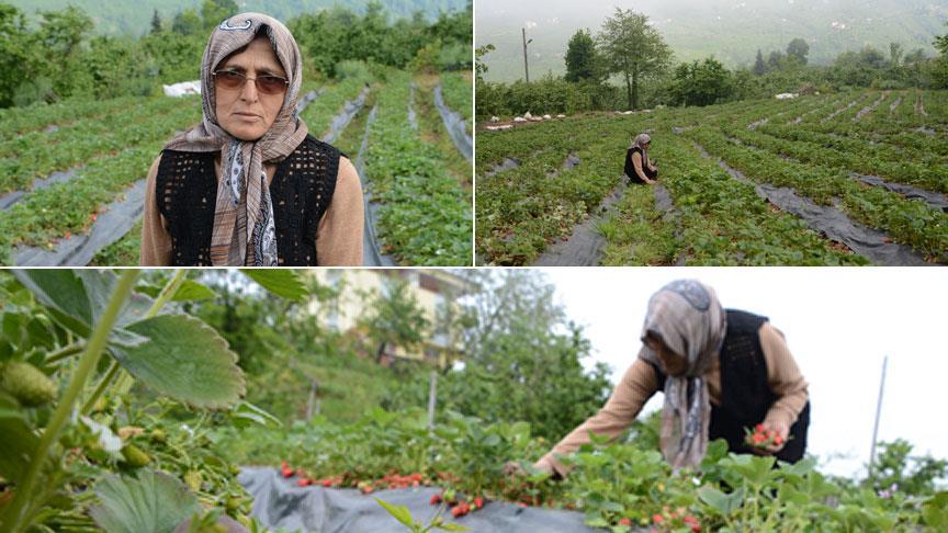 Tek başına yetiştirdiği çilekler Ordu'da sofraları süslüyor