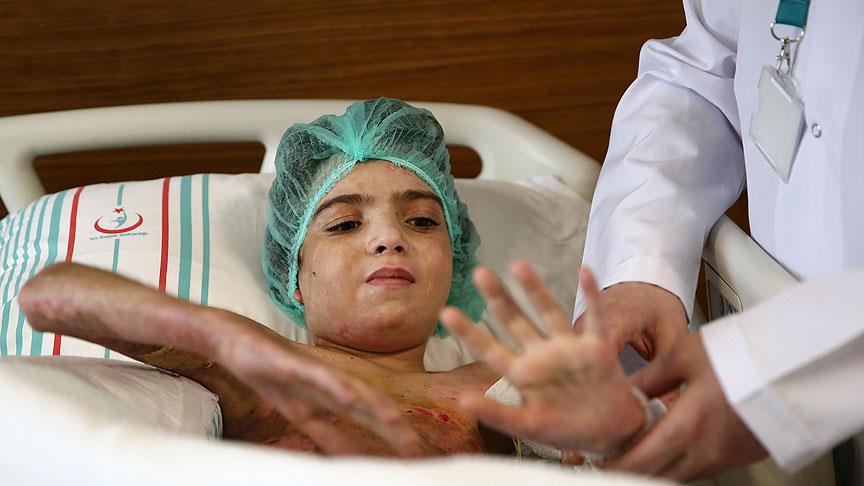Suriye'nin İdlib kentinde, evlerindeki sobayı yakmak için döktüğü mazotun alev alması sonucu vücudunun büyük bölümü yanan 10 yaşındaki Ahmet Aslan, Türkiye'de şifa buldu.