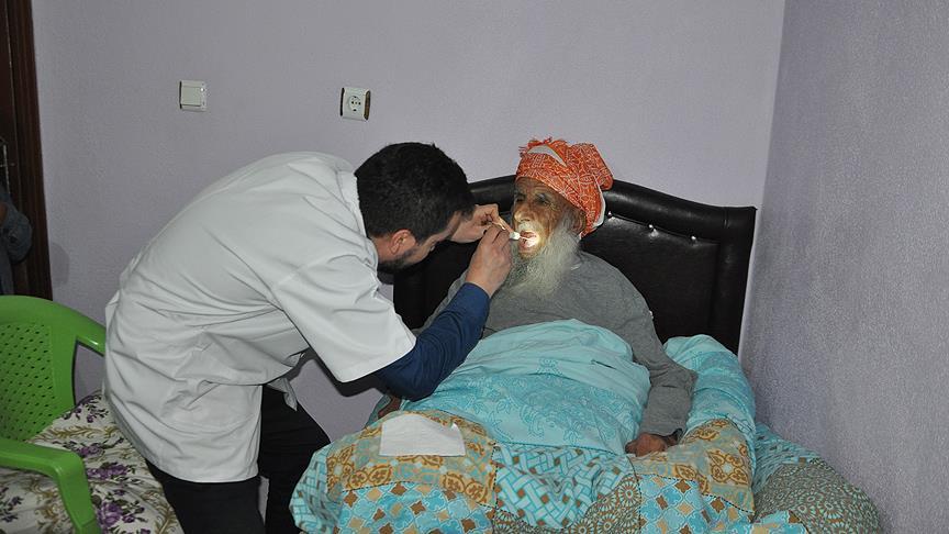 Muş Devlet Hastanesi yöneticisi Op. Dr. Murat Kılıç, merkeze bağlı Kepenek köyünde yaşayan 7 çocuk ve 107 torun sahibi 111 yaşındaki Zübeyir Bakır'ı evinde ziyaret etti.