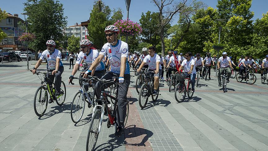 "Burada bulunarak onlara, 'Sizi unutmadık, unutmayacağız, unutturmayacağız' diyoruz. Startı verilen 1-19 Temmuz tarihlerinde gerçekleştirilecek, 15 Temmuz Şehitlerini Anma Bisiklet Turu, Konya'dan başlayarak Niğde, Aksaray, Ankara, Bolu, Düzce, Sakarya, Kocaeli, İstanbul, Tekirdağ ve Çanakkale'ye uzanacak. Üç sağlık çalışanı önderliğinde yaklaşık 250 bisikletçinin katıldığı turda, bisikletçiler toplamda bin 600 kilometre yol yapacak. Katılımcılar, gittikleri illerde de 15 Temmuz şehitlerinin ailelerini ziyaret edecek."