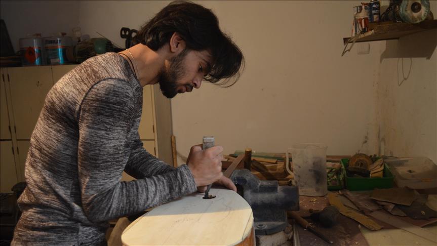 Kırşehir Ahi Evran Üniversitesi Neşet Ertaş Güzel Sanatlar Fakültesi Müzik Bölümü öğrencisi Ömer Faruk Arın, evinin bodrum katında üç sene önce kurduğu atölyede bağlama üretiyor.
