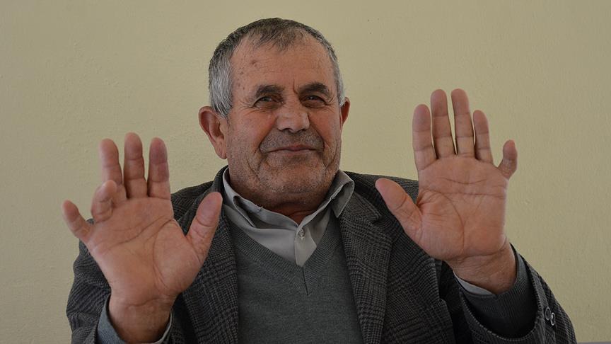 Denizli'nin Çivril ilçesinde yaşayan, ellerinde ve ayaklarında 12'şer olmak üzere toplam 24 parmağı bulunan 65 yaşındaki Ali İhsan Özdemir görenleri şaşırtıyor.