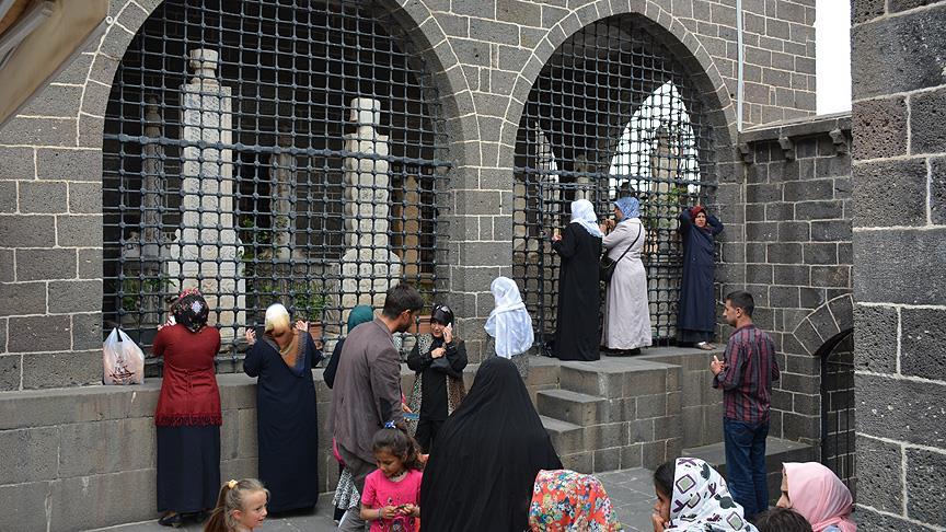Diyarbakır'ın Sur ilçesinde, PKK'lı teröristlerin saldırısı sonucu uzun süre ibadete kapalı olan ve terör örgütüne yönelik operasyonun başarıyla tamamlanmasının ardından yeniden ibadete açılan 27 şehit sahabenin metfun olduğu Hazreti Süleyman Camisi'ne vatandaşlar yoğun ilgi gösteriyor.
