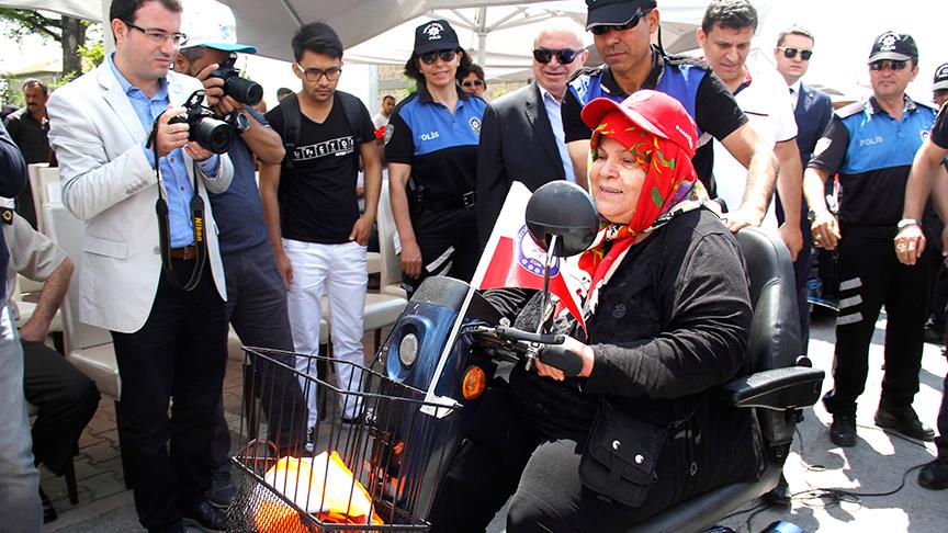 Engelli vatandaşlara akülü araç hediye eden hayırsever iş adamı Çetin Şen'e teşekkür eden Kamçı, araçları vatandaşlara teslim etti.