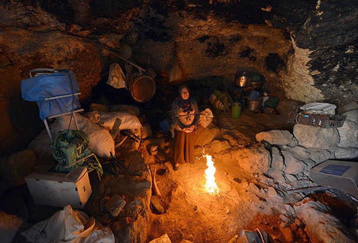 Mağara yaktıkları çalı çırpının etrafında oturan aile üyeleri, ekmeklerini de burada yaptıklarını söylüyor. Ailenin toplam 45 tane koyun ve keçisi var. Kışın bölge soğuk olduğu için mağara içinde yaktıkları odunlarla ısınıyorlar. Hayvanları ile aynı yerde yatıyorlar. Mağaranın içi odun isinden simsiyah olmuş durumda. Yazın en büyük tehdit, sıcaktan kaçan yılan ve akreplerin gelip mağaraya girmesi ama o bile onlara pek korku vermiyor. Isırmalarına alıştık diyerek gülüyorlar.