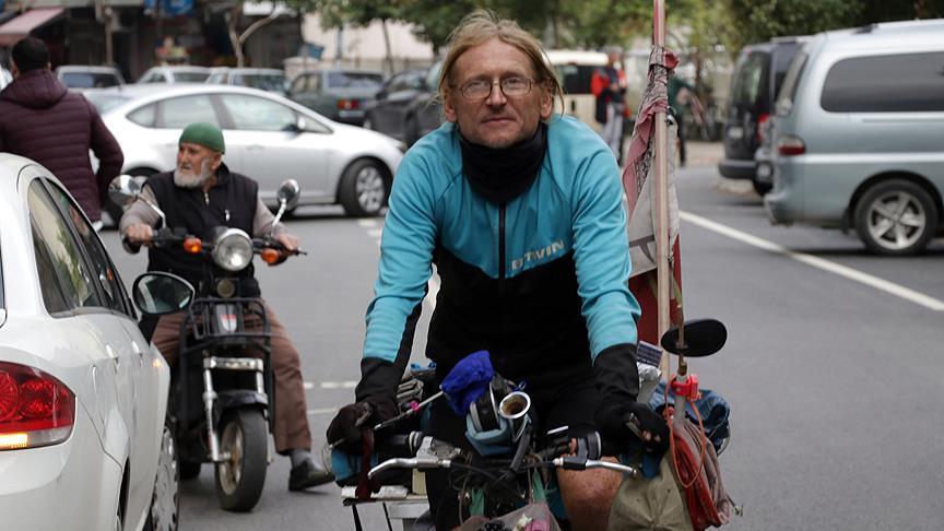 İngiltere'den daha önce otostop çekerek birçok ülkeyi gezen 56 yaşındaki Janick Planeur, bisikletiyle çıktığı turda 12 bin 255 kilometre yol katederek Aydın'a ulaştı.