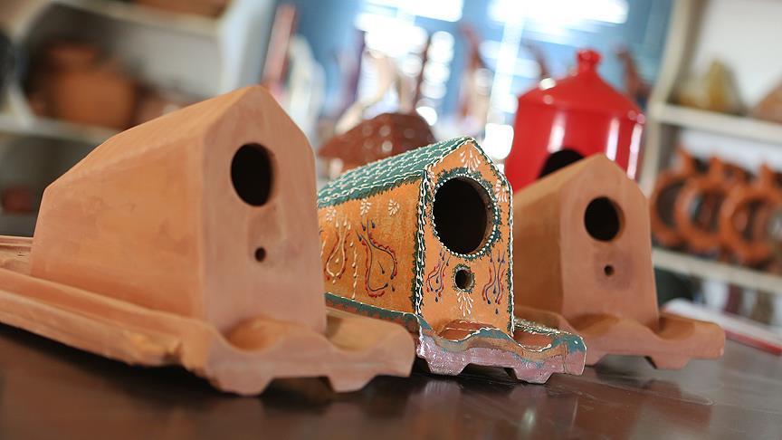 Yurt dışında 70 dolara alıcı bulan kuş yuvalı kiremitler, el işçiliği de kullanılarak farklı kuş türlerinin barınabileceği şekilde üretilip 35-60 liradan satılıyor.