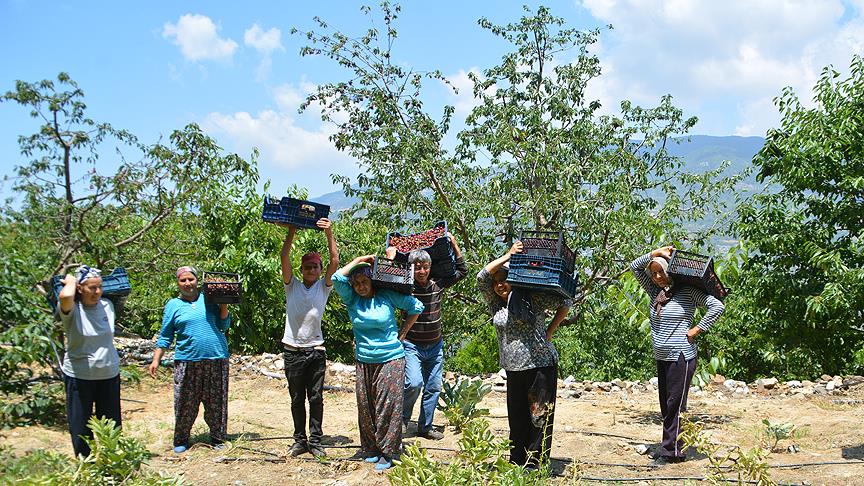 Civar köylerden ve merkezden gelen işçiler kiraz tarlalarında çalışarak çocuklarının eğitimini sağlamak üzere günlük 70 lira gibi bir yevmiye ile çalışmaktalar."