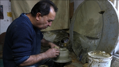 Kaynaka, 100 metrekarelik imalathanesinde ilerlemiş yaşına rağmen killi topraktan, vazo, biblo, su testisi, küp, ekmek tandırı ve çömlek yapıyor.