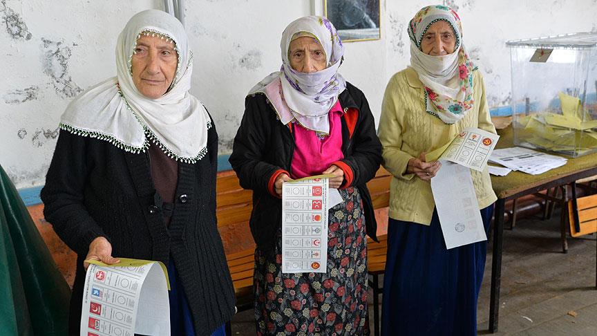 Ordu'nun Perşembe ilçesinde yaşayan 85 yaşındaki üçüzler, sandık başına giderek oylarını kullandı.