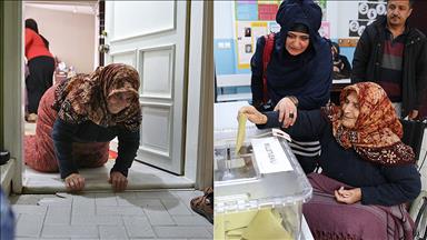 Mahalledeki atıl okul binasına getirilen Sarı kardeşler, 1107 numaralı sandıkta oylarını kullandı.
