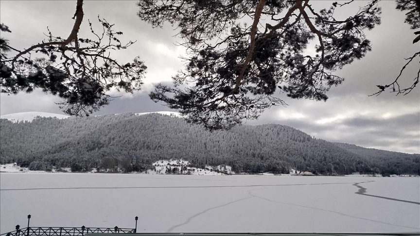 Bolu Doğa Koruma ve Milli Parklar ile jandarma ekipleri, tatilcilere buz tutan gölün yüzeyine çıkmama uyarısında bulundu.