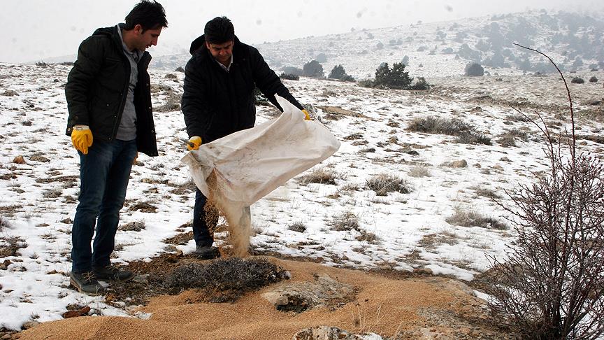 Bölgeye giden ekipler, Resul Baba tepesi olarak bilinen 50 hektarlık alana keklik ve tavşanlar için 250 kilogram arpa, buğday ve mısırdan oluşan yem bıraktı.
