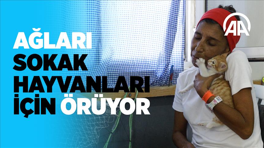 İzmir'de özel bir firmada yönetici iken emekli olan 56 yaşındaki Gülşen Durualp, evinde bakımını yaptığı sakat hayvanların masraflarını karşılamak için balık ağı örüyor.