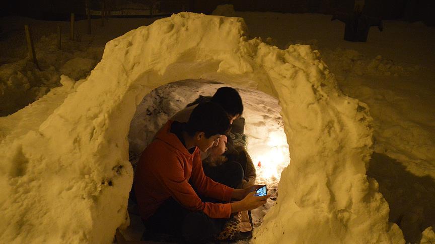 Zübeyir (11) ve Celil (13) Erdoğan kardeşler, bu eğlenceyi evlerinin önünde Eskimolar'ı örnek alarak yaptıkları iglo ile farklı boyuta taşıdı.