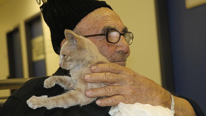 Bolu'da sobayı benzinle tutuşturmak isterken çıkan yangında evi kullanılamaz hale gelen Ali Meşe, itfaiye ekiplerinin kurtardığı kedisine, tedavi gördüğü hastanede kavuştu.