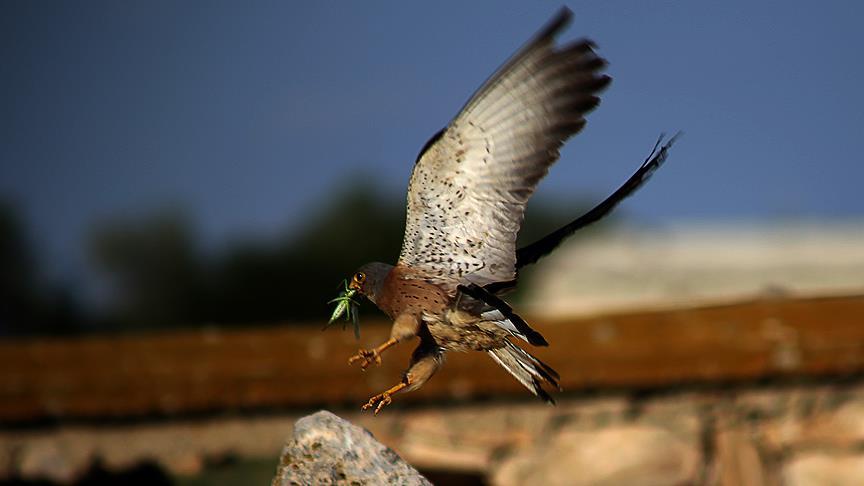 İlçenin Adabağ Mahallesi'ndeki kaya ve moloz yığınlarına yuvalanan yaklaşık 50 kerkenezin, yumurtadan çıkan yavrularını doyurma mesaisi AA muhabirlerince görüntülendi.