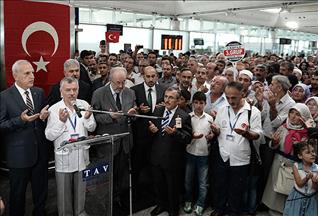 Törende Kocatepe Camisi imamı Mehmet Ali Kuştaşı tarafından okunan Kuran-ı Kerim okundu. Konuşmaların ardından Ankara Müftü Yardımcısı Ali Gülden ile topluca dua eden hacı adayları, yakınları tarafından uğurlandı.