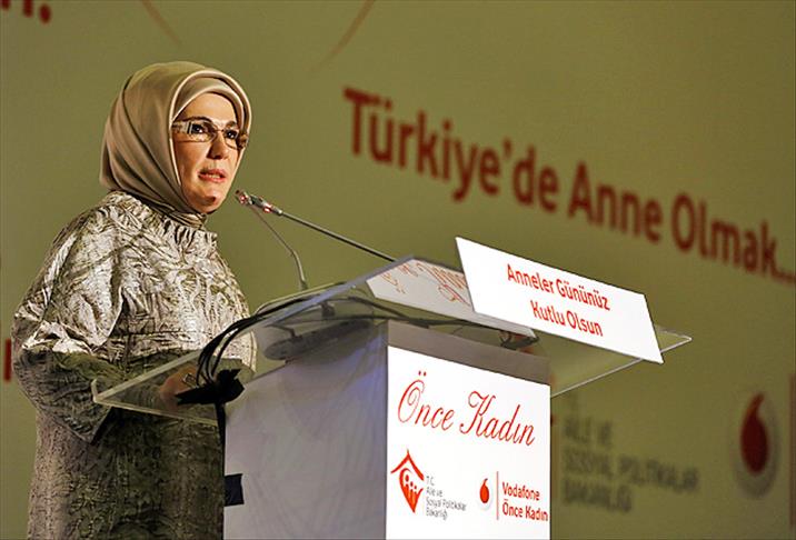 Emine Erdoğan, Aile ve Sosyal Politikalar Bakanlığı ile Vodafone Türkiye tarafından ATO Kongre Merkezinde düzenlenen "Türkiye'de Anne Olmak, Annelerimiz" panelinin açılışındaki konuşmasına, etkinliğin düzenlenmesinde katkısı olanları tebrik ederek başladı.