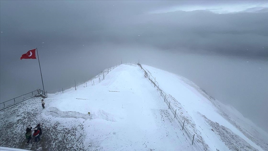 Sabah saatlerinde başlayan kar nedeniyle 2365 metre rakımlı Tahtalı Dağı'nın zirvesi kısa sürede beyaza büründü.