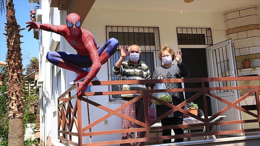 Antalya'nın en işlek caddelerinde, parklarında "Örümcek Adam" kostümüyle dolaşıp, mini şovlar yapan, Elazığ depremi sonrasında bölgeye giderek depremzede çocukları gösterileriyle eğlendiren Burak Soylu, yeni tip koronavirüs (Kovid-19) tedbirleri sırasında da kolları sıvadı. Soylu, bu sefer kostümünü, Kovid-19 salgınıyla mücadele tedbirleri kapsamında sokağa çıkamayan 65 yaş üstü vatandaşlara ve çocuklara moral vermek için giydi.